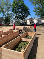 On Saturday, May 10, 2025, volunteers and Community Garden Coordinator, Pearl Nurse, worked together to build raised garden beds.